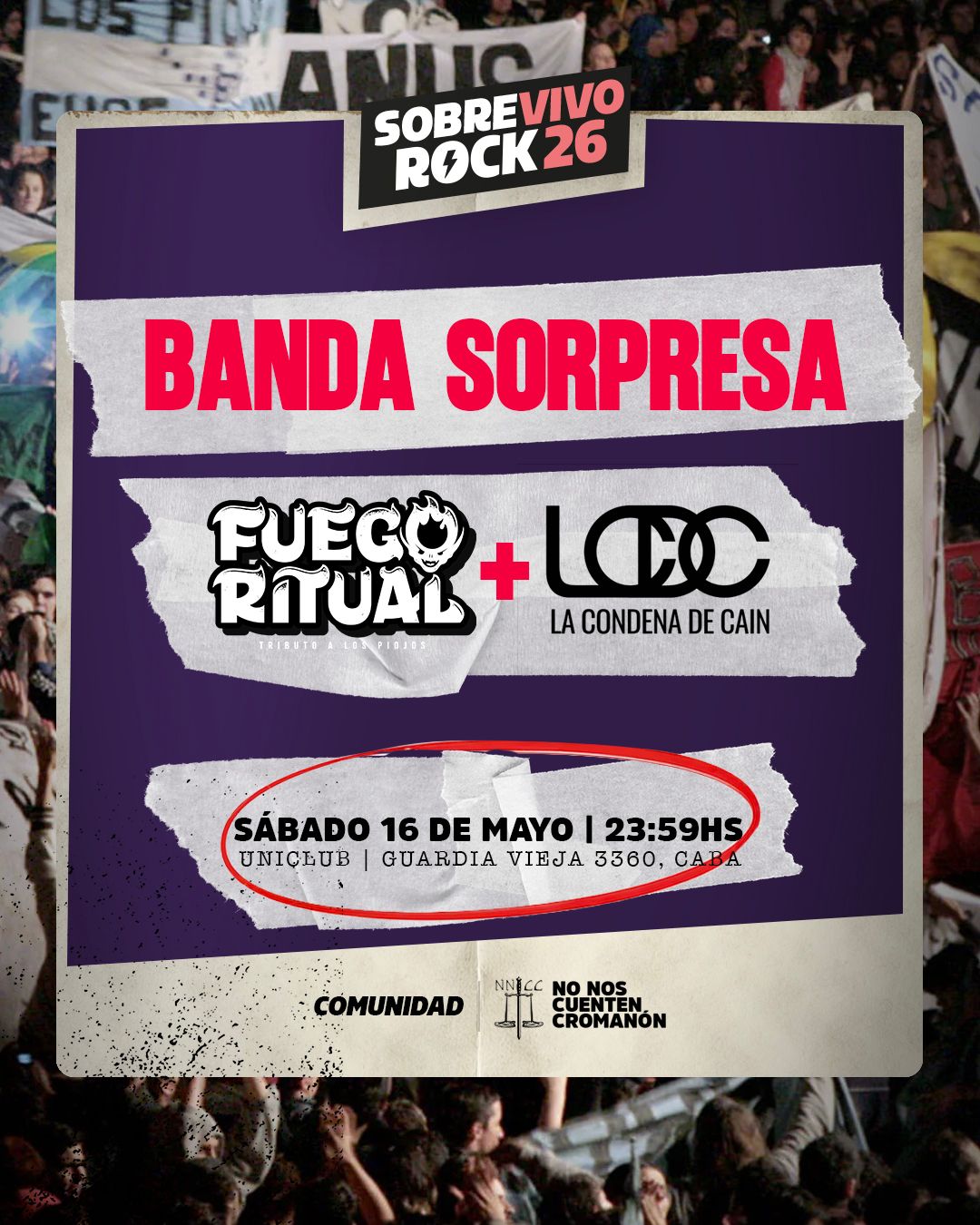 👉 SOBREVIVO ROCK es un ciclo de eventos a beneficio del programa de asistencia en salud mental de NNCC, que brinda acompañamiento a sobrevivientes y familiares de Cromañón.